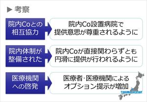 ・院内体制が整備されたことで、院内Coが直接かかわっていなくても円滑に連絡・提供がおこなわれるようになった。